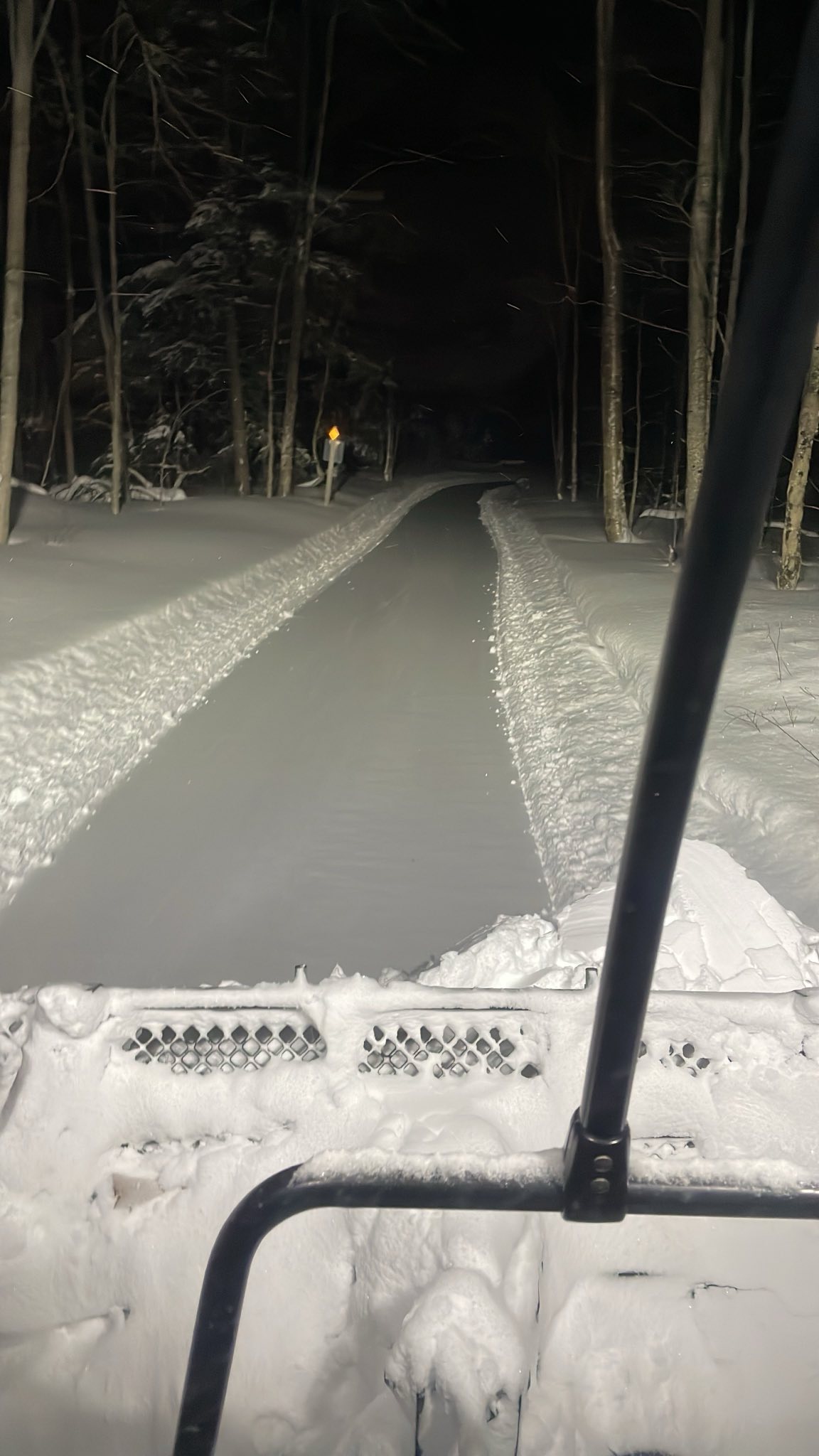 Groomed last night - Lots of leaners and brush. We hacked our way thru and will be back for more brushing. The trail groomed out sooooo nice. Tractor did break thru in a couple of spots, the drag covered it up nice but there is unfrozen ground under it all in places.